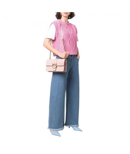 Classic Love Bag One en cuir souple, soyeux au toucher. La fermeture avec patte cloutée en cuir arbore l’emblématique boucle Love Birds Diamond Cut en métal. L’intérieur présente une doublure en daim microfibre, un compartiment zippé et une poche plaquée en cuir. La bandoulière amovible associe la chaîne ronde classique à une pratique patte d’épaule ajustable en cuir. Activez votre sac PINKO : vérifiez l’authenticité de votre article et accédez à une expérience personnalisée en approchant votre smartphone de la broderie Love Birds à l’arrière du sac !