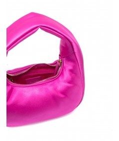 Sac hobo satiné Vibu de Pinko avec ornements en cristal satiné rose fuchsia bandoulière amovible à maillons de chaîne, compartiment principal et fermeture zippée sur le dessus