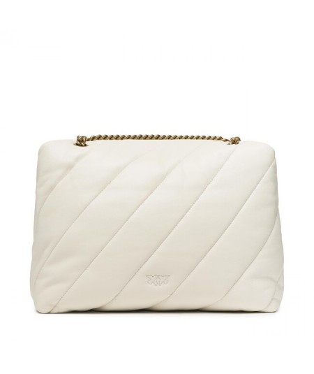 Big Love Bag Puff en cuir nappa souple avec maxi matelassage oblique. La fermeture est complétée par l'emblématique boucle en métal Love Birds Diamond Cut. L'intérieur est doublé en microfibre de suède et comprend une cloison fermée par un zip et une poche murale. La bandoulière combine la chaîne métallique ronde classique avec la bandoulière pratique en cuir nappa.