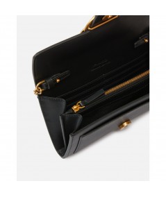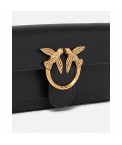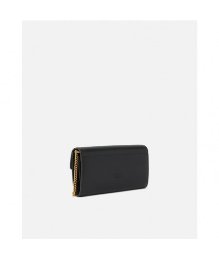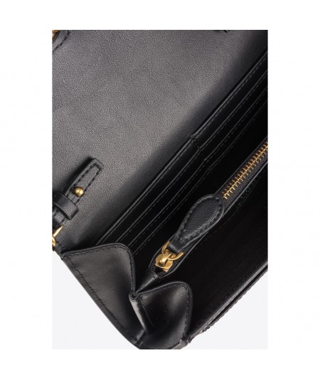Portefeuille Love Bag à bandoulière en cuir souple, soyeux au toucher. La fermeture avec bouton invisible arbore l’emblématique boucle Love Birds Diamond Cut. L’intérieur présente une doublure en polycoton et quatre compartiments, dont un zippé et deux avec logements pour cartes de crédit. La bandoulière chaîne ronde en métal est amovible et permet de porter ce portefeuille en bandoulière. - LOVE ONE WALLET C