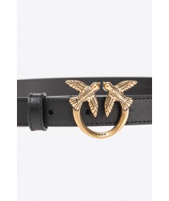 Ceinture fine en cuir souple et soyeux avec boucle en métal Love Birds Diamond Cut.