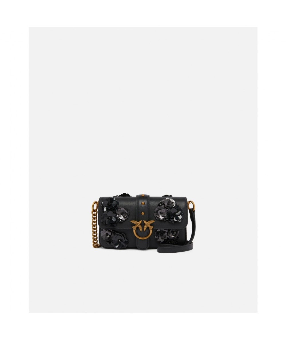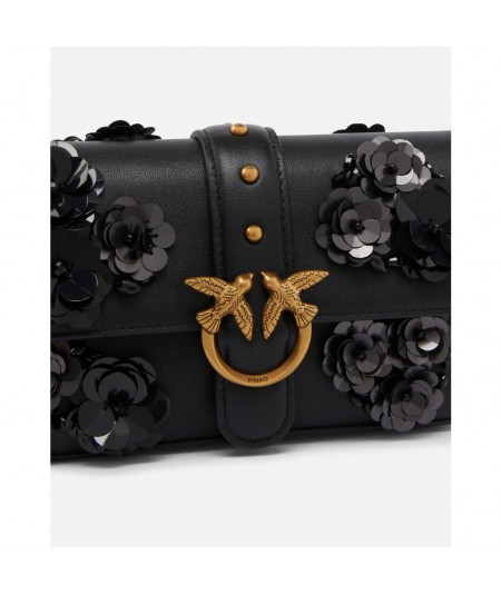 Petit sac porté épaule Baby Love Bag Slouchy en cuir. Ultra-raffiné et pratique, ce sac est doté d’une bandoulière réglable en cuir et en chaîne pour un porté épaule ou bandoulière. Ce modèle de soirée est rehaussé de différentes broderies en forme de fleurs composées de paillettes pour un look scintillant. La boucle Love Birds Diamond Cut, symbole du style unique de la maison, apporte la touche finale. L’intérieur présente une doublure en drill de coton ainsi qu’une poche plaquée zippée. Activez votre accessoire PINKO