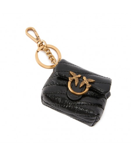Étui pour AirPods en cuir souple brillant à matelassage en biais, griffé d’une plaquette Love Birds Diamond Cut emblématique au niveau de la fermeture magnétique. Cet accessoire est également doté d'une chaînette en métal avec un petit mousqueton pour l'accrocher à votre sac et l'avoir toujours avec vous. - AIRPODS LOVE PUFF