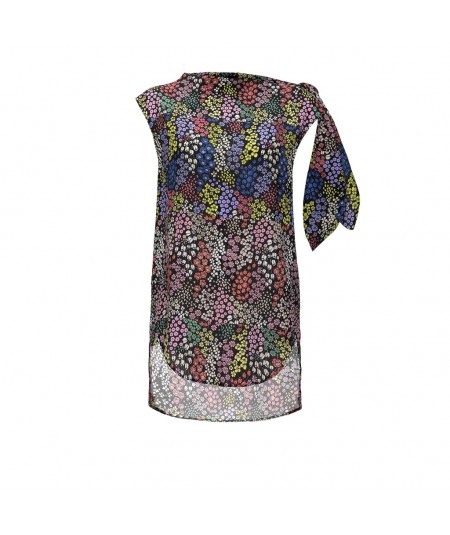 Chemise courte en popeline de coton avec maxi ceinture à la base. Col pointu classique, manches courtes et découpes sur le devant.