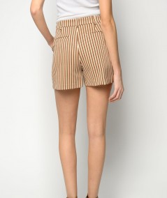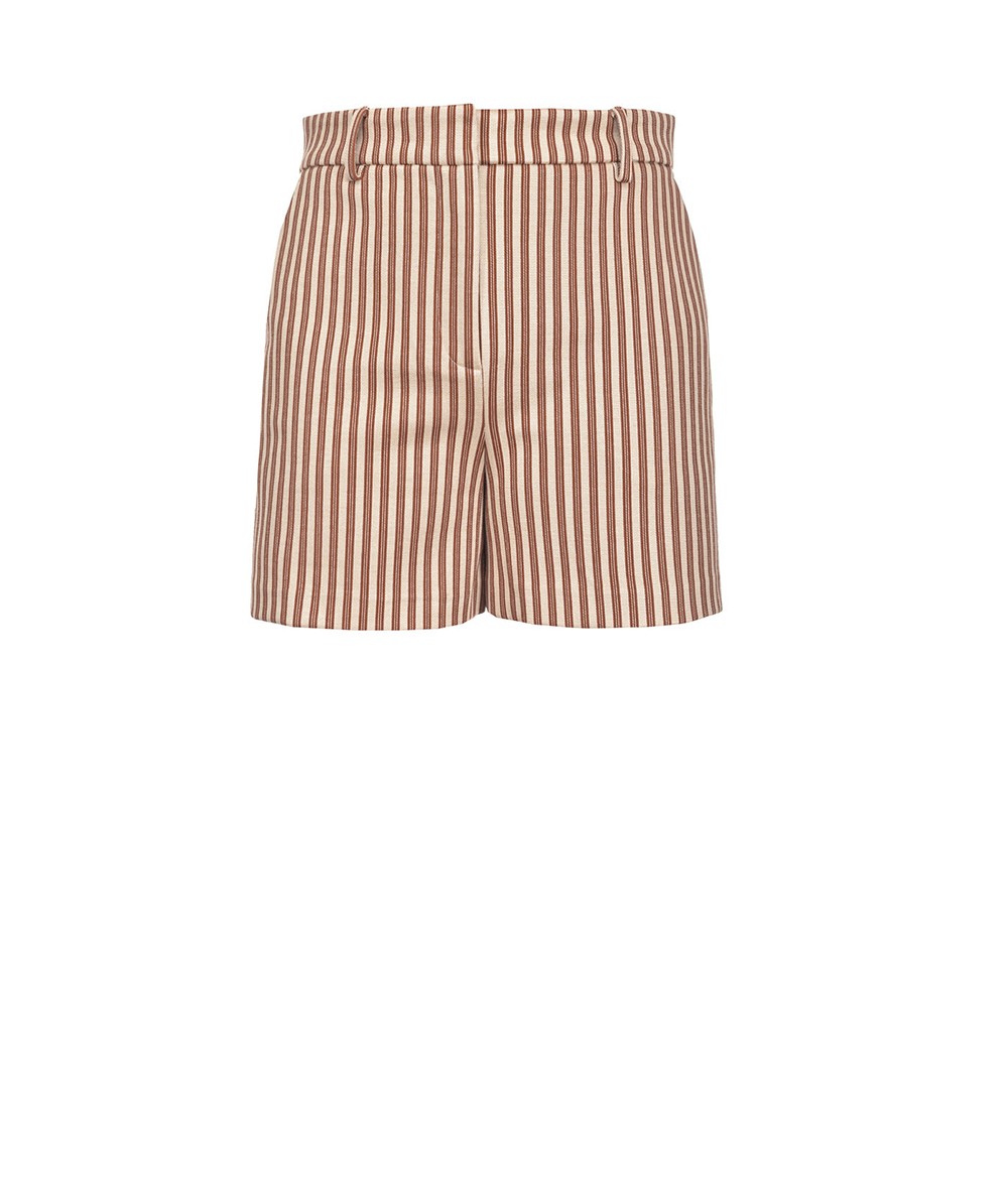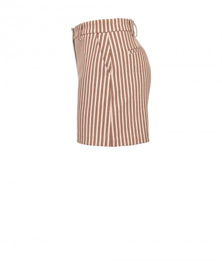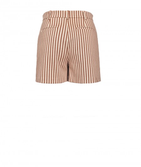 Short en tissu technique de viscose stretch tricoté au point de Rome à rayures. Taille haute avec passants pour ceinture, poches obliques sur le devant et poches passepoilées à l’arrière. Fermeture à glissière avec petite attache.