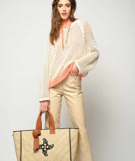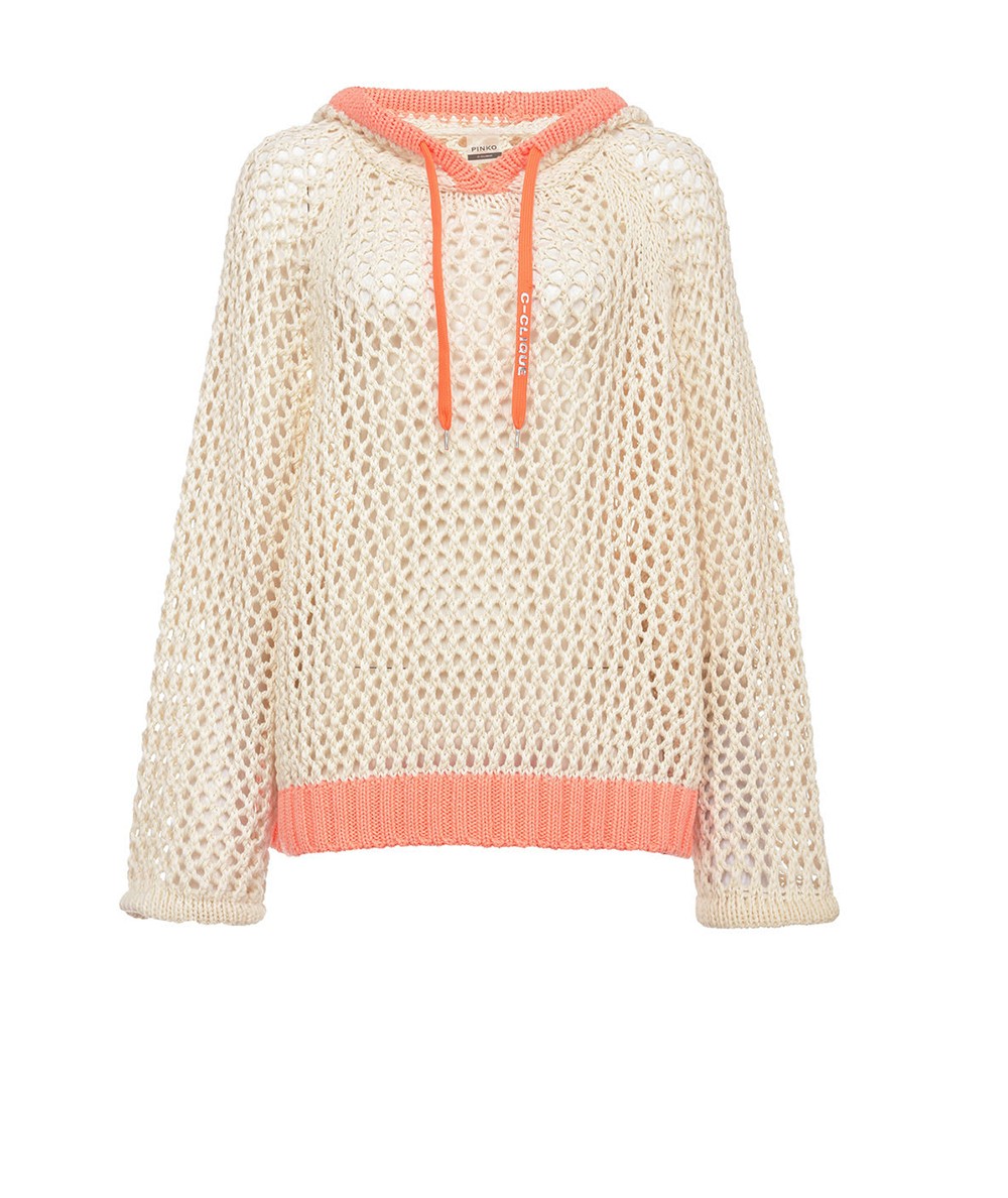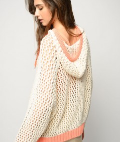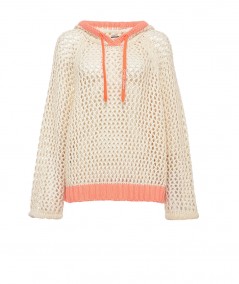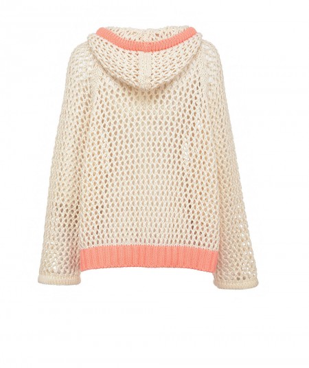 Pull en coton mélangé effet résille au crochet présentant un col à capuche réglable grâce à un cordon coulissant orné du logo C-Clique. La bordure de la capuche et le bas de la pièce sont rehaussés d’un point et d’une couleur contrastés.