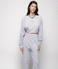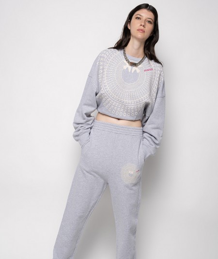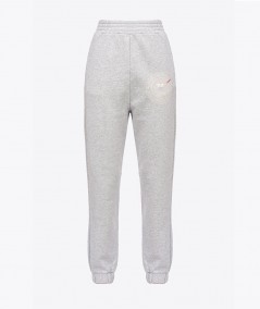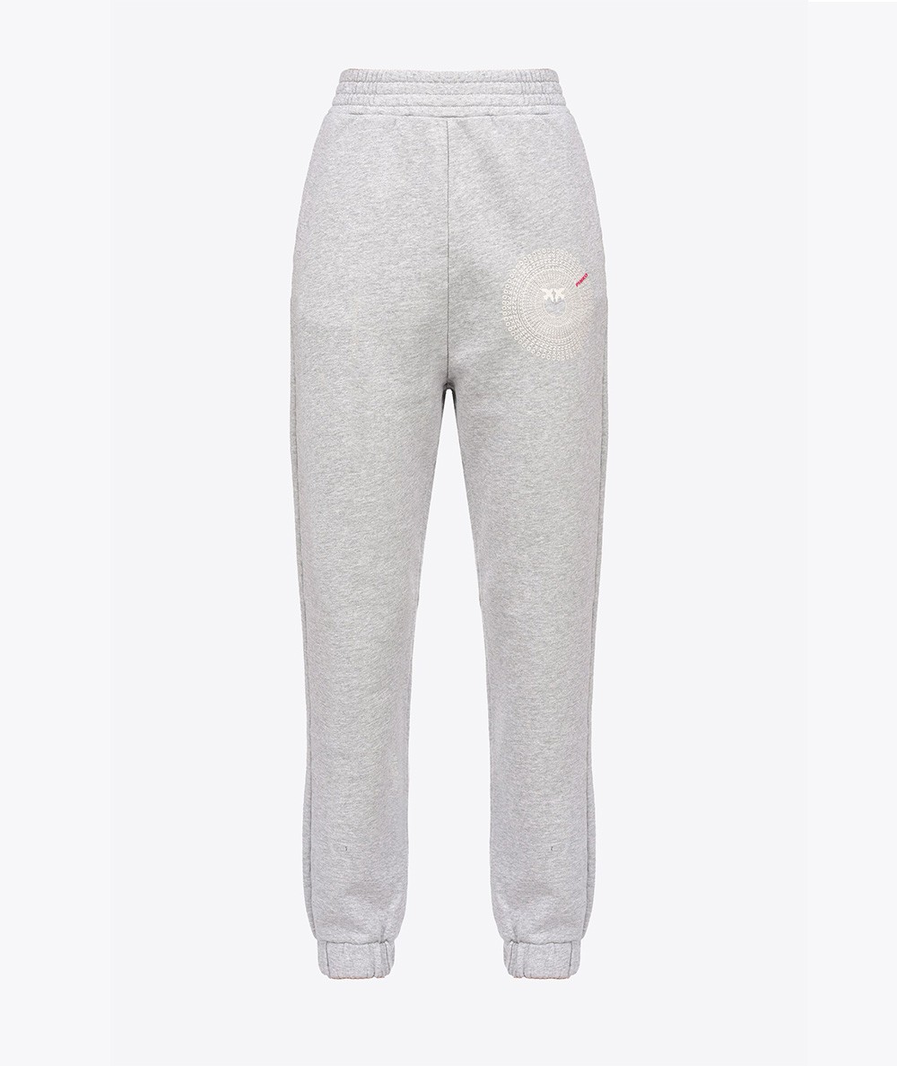 Jogger en molleton de coton biologique à imprimé logo PINKO Radial sur le devant. Taille haute avec élastique, poches fendues sur les hanches et bas resserré.
