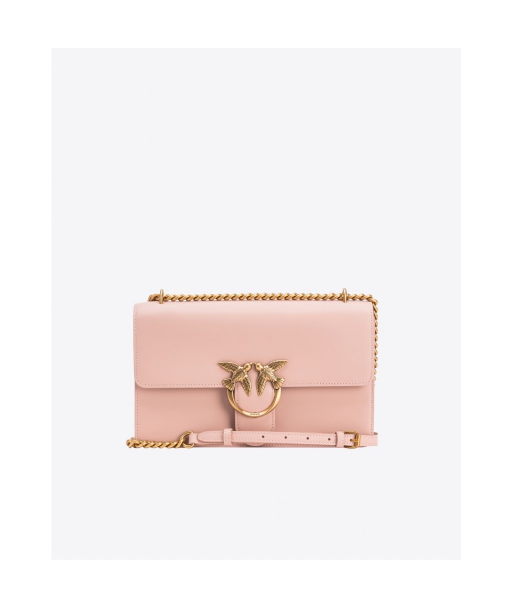 Classic Love Bag One en cuir souple et soyeux. La fermeture est complétée par l'emblématique boucle en métal Love Birds Diamond Cut. L'intérieur est doublé en microfibre suédée et comprend une cloison zippée et une poche murale en cuir. La bandoulière combine la chaîne ronde classique avec la bandoulière en cuir réglable et pratique.