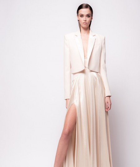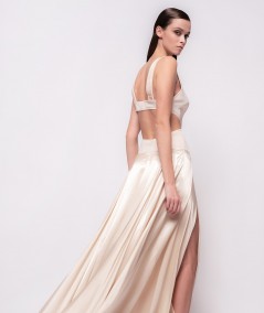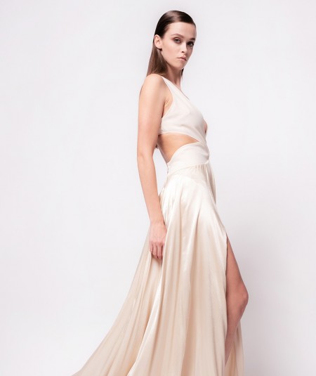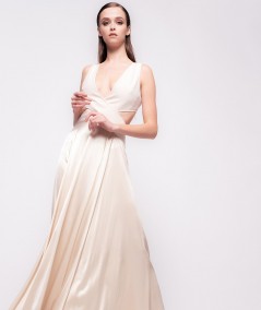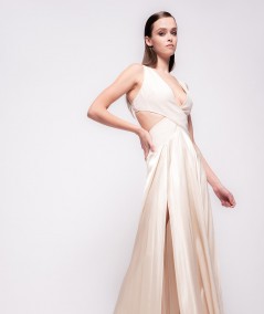 Robe longue sans manches en satin froissé à l’effet chiffonné façon fripé. Profond décolleté en V sur le devant avec les hanches et le dos nus. Jupe longue à plis souples avec une traîne. Fermeture zippée invisible au milieu du dos. Cette pièce fait partie de la collection capsule Partywear "Dress To Impress".