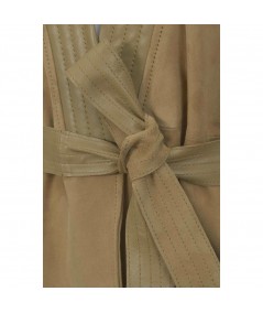 Robe longue sans manches en satin froissé à l’effet chiffonné façon fripé. Profond décolleté en V sur le devant avec les hanches et le dos nus....